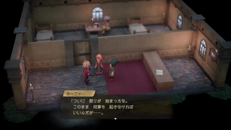 - アイラの早期加入: シナリオが全体的に見直され、試遊時点では、原作でメルビン加入まで3人パーティで挑むことになっていたグラコス戦の前にアイラがパーティに加入するタイミングが早められています。